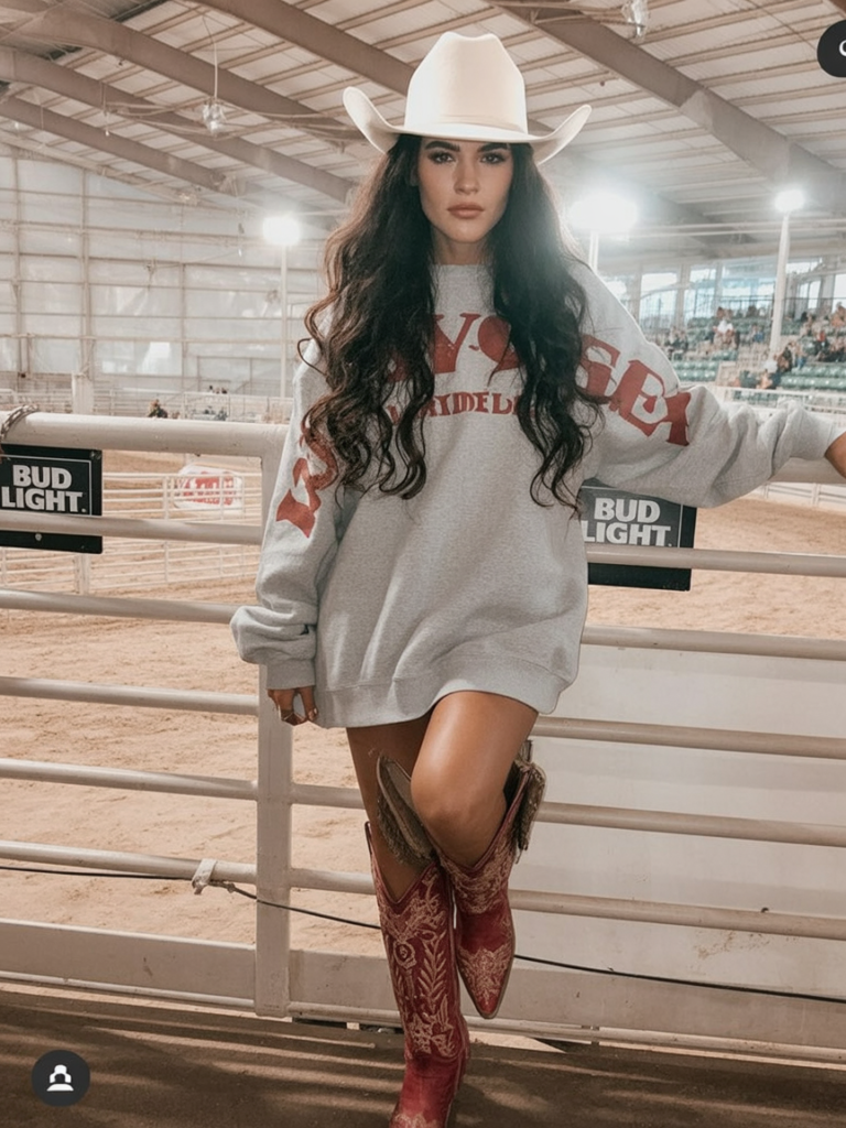 6. Oversized Sweatshirt & Red Cowboy Boots