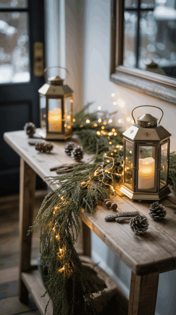 - Vintage and handmade accents: Old lanterns, mason jars filled with pinecones, hand-stitched pillows, or thrifted wool throws
